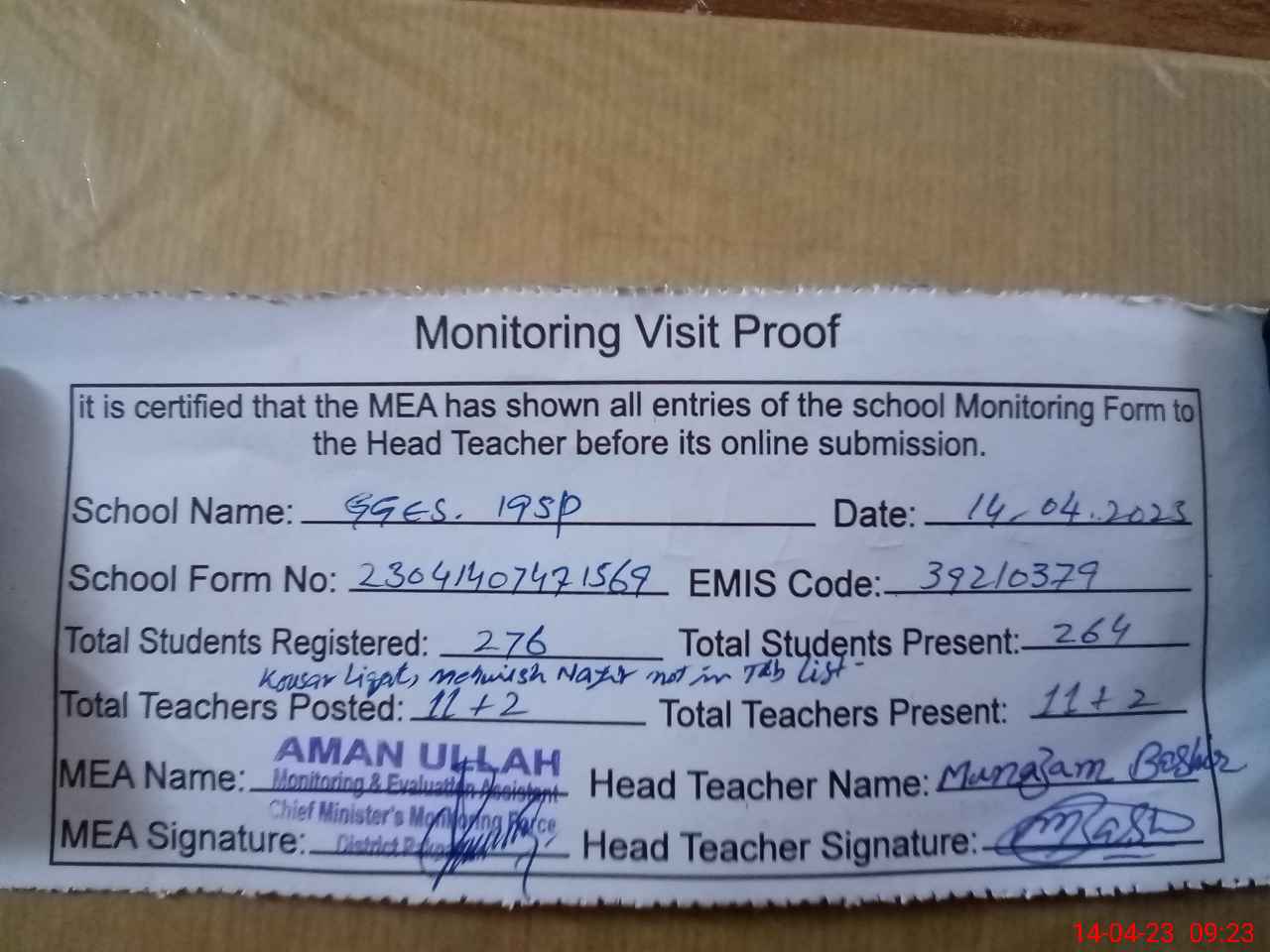 | Certified that this School was Inspected by the Undersigned MEA/DMO Today and the Information Stated Above is as Per Record. | |||||