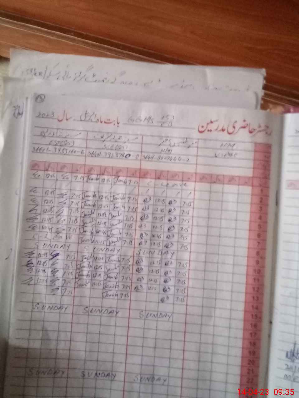 | CNIC | Full Name | Designation | R/C | Absence During Last Calender Month |