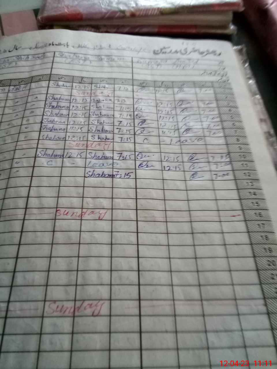 | CNIC | Full Name | Designation | R/C | Absence During Last Calender Month |
