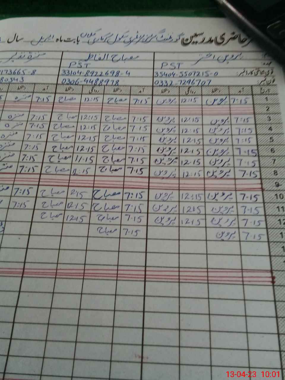| CNIC | Full Name | Designation | R/C | Absence During Last Calender Month |