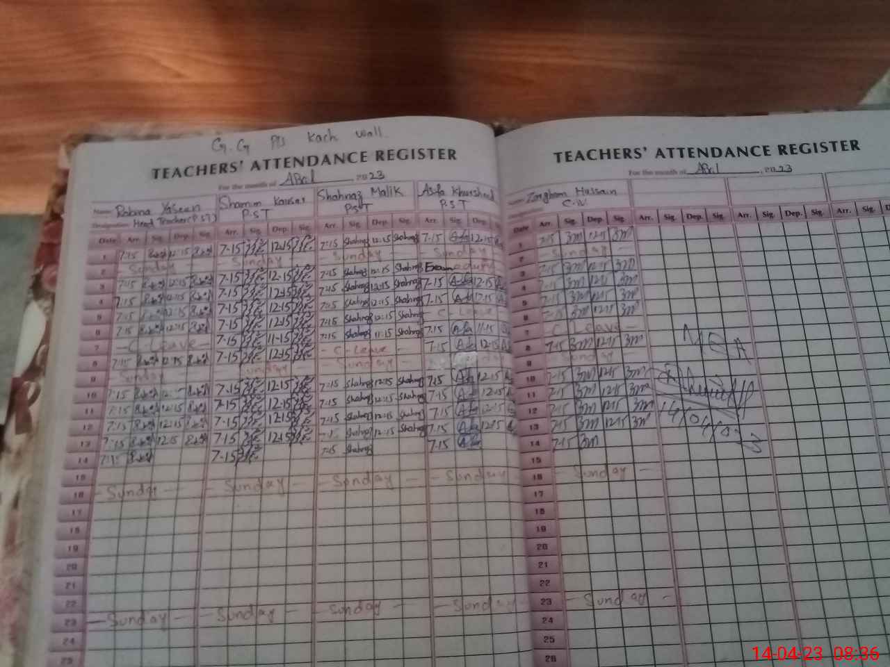 | CNIC | Full Name | Designation | R/C | Absence During Last Calender Month |