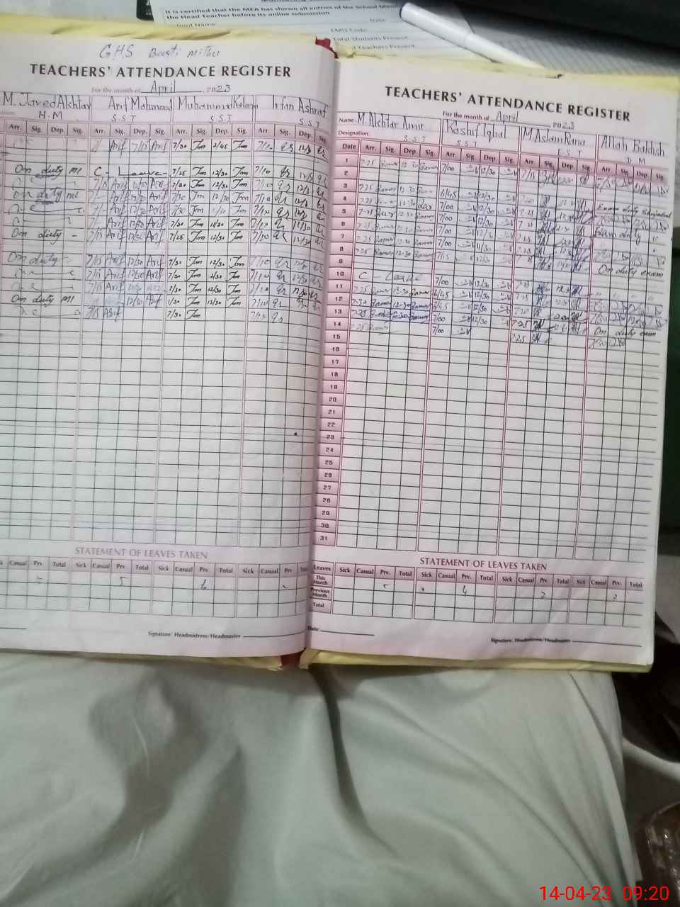 | Attendance Register | Head Teacher | MEA with School | Visit Proof |