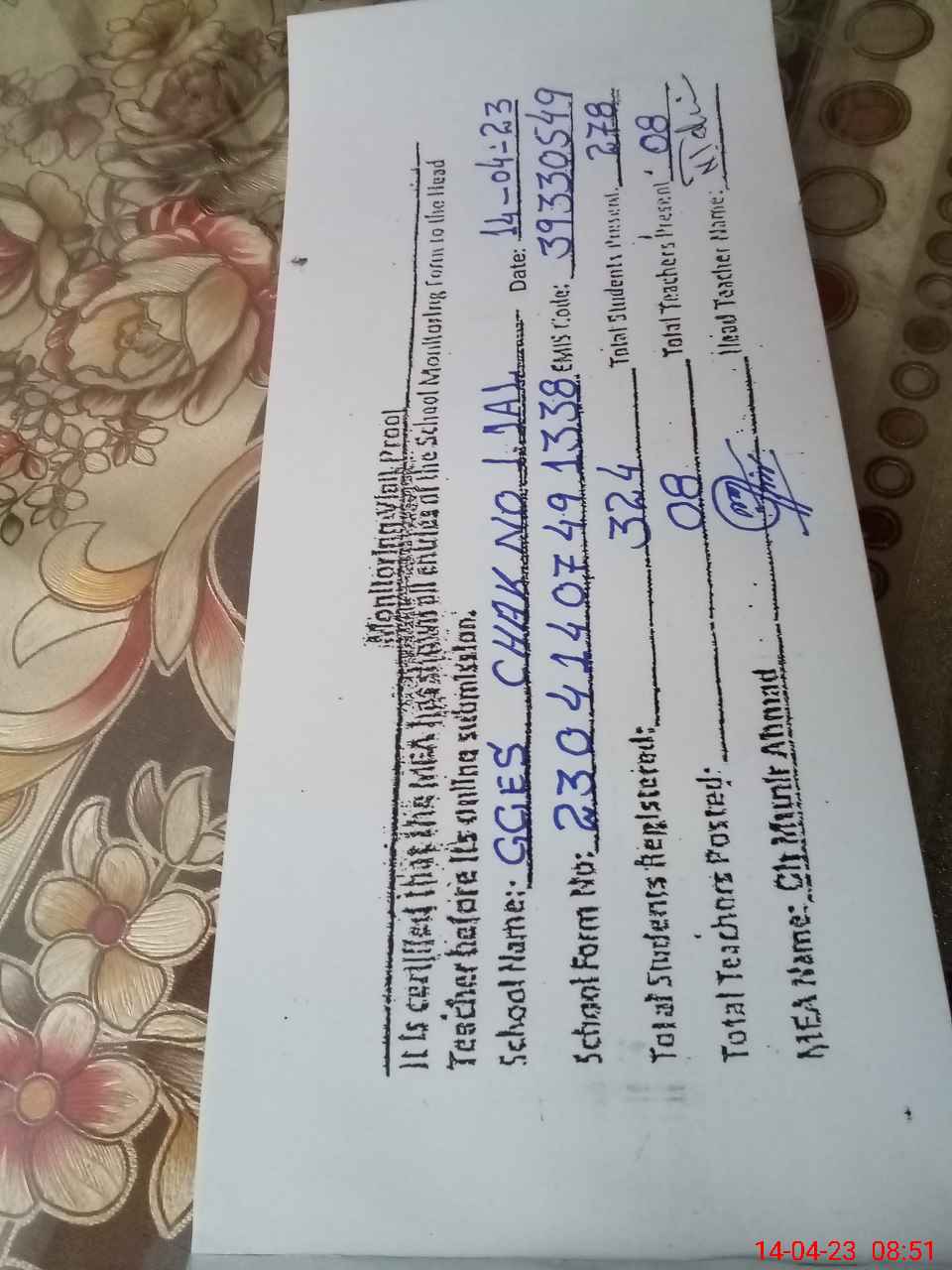 | EMIS Code: 39330549 | Name of School: GGES CHAK 1-1AL | |||