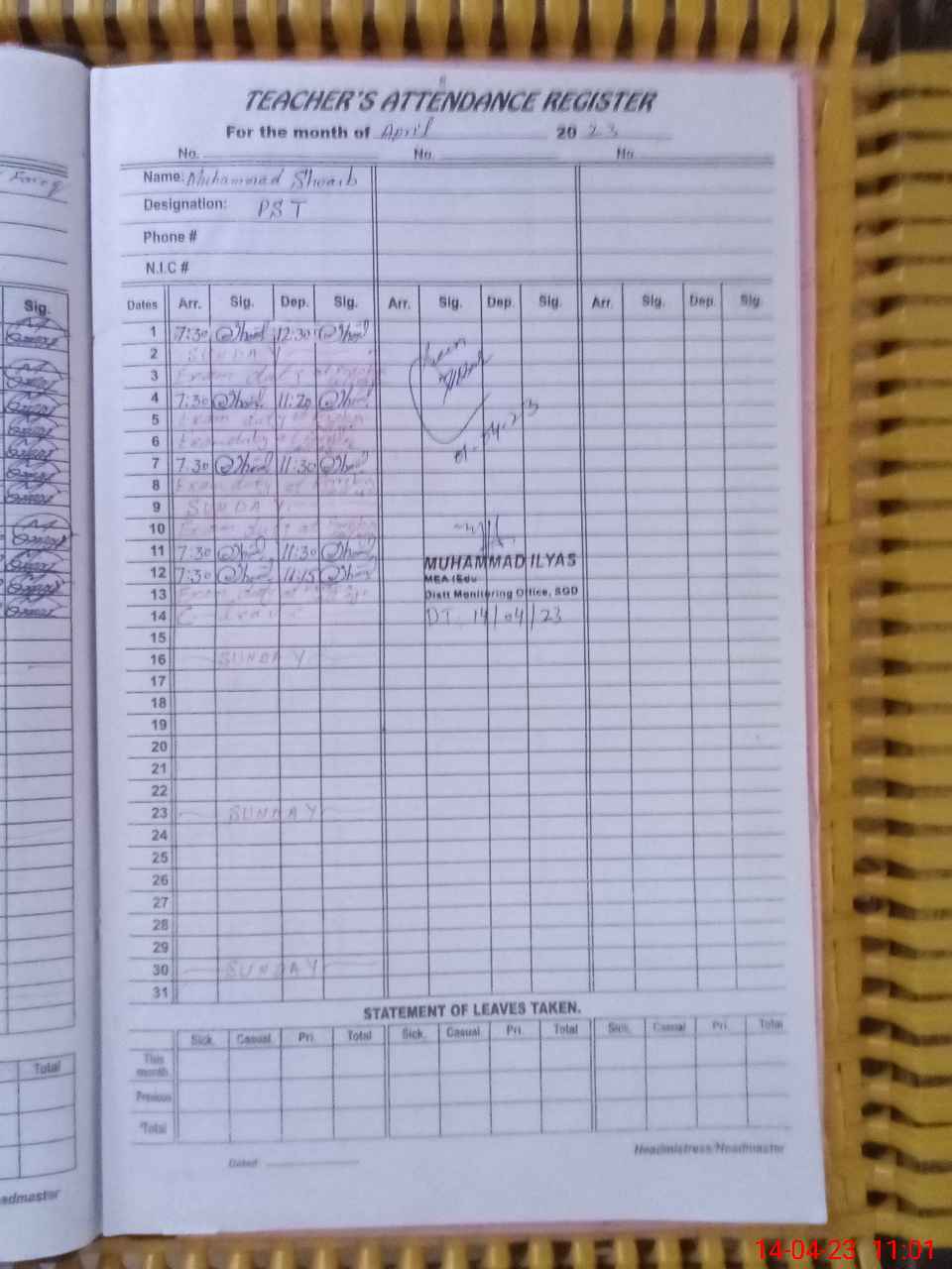 | Name: HA**** MU**** NA**** Designation: (School Headmaster's/Headmistress's) PST Phone/Cell Number: 03**** |