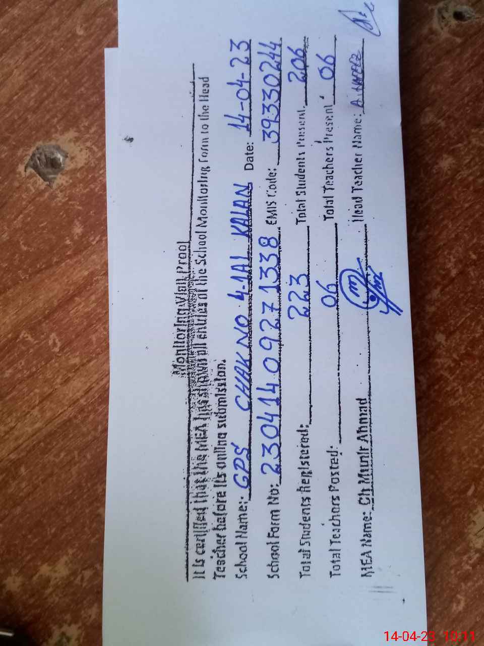 | EMIS Code: 39330244 | Name of School: GPS CHAK 4/1-AL KALAN | |||