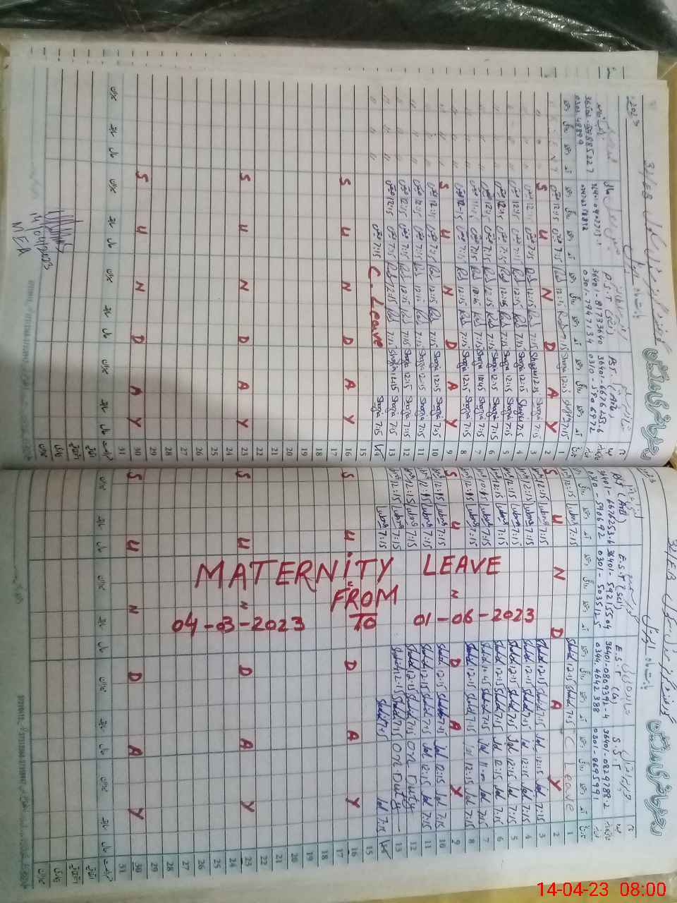 | 36**** | Go**** Sa**** | Regular | 30 | 0 | 0 | 28 | 0 | 0 | 0 | 0 | 2 | Maternity | |