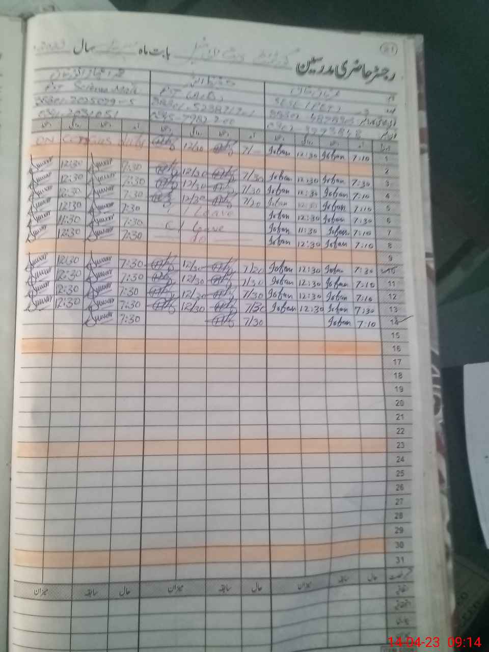 | CNIC | Full Name | Designation | R/C | Absence During Last Calender Month |