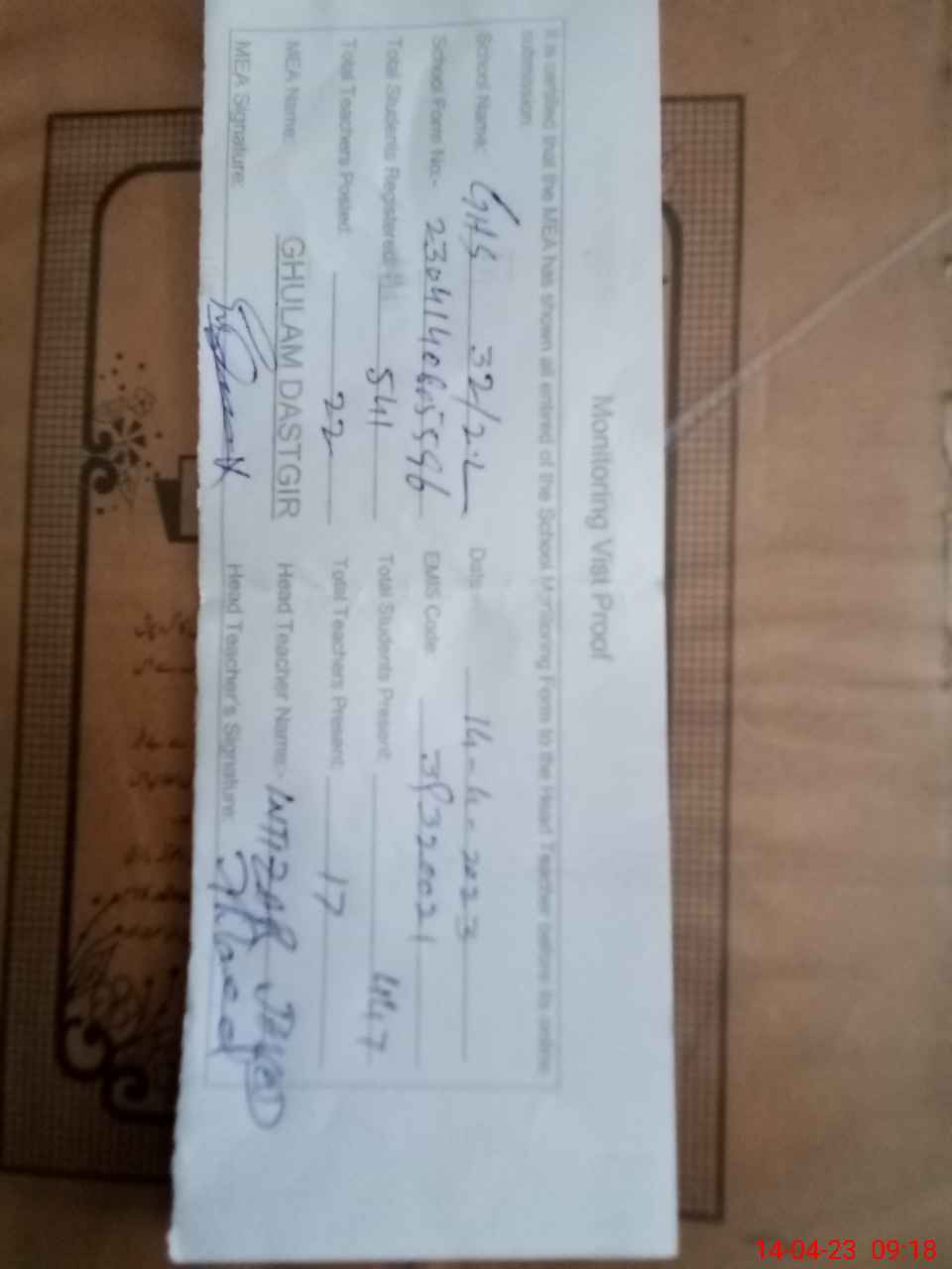| EMIS Code: 39320021 | Name of School: GHS CHAK NO.32/2-L | |||