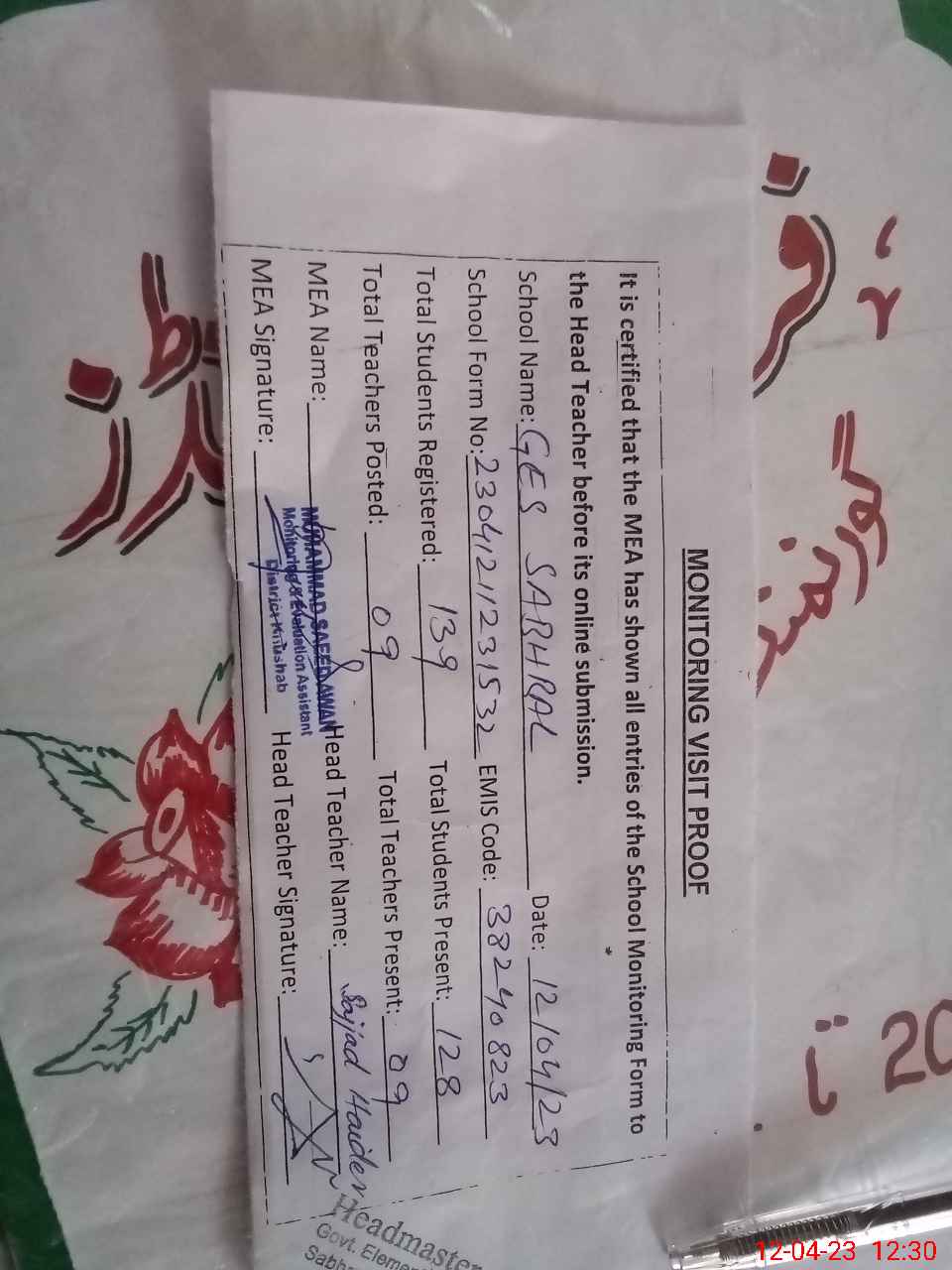 | EMIS Code: 38240823 | Name of School: GES SABHRAL | |||