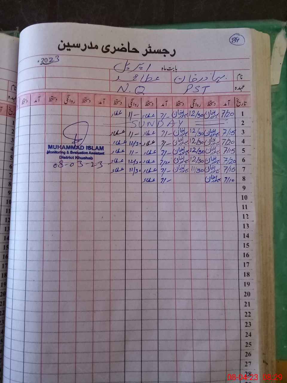 | 38**** | Mu**** Ri**** Kh**** | PST | Regular | 0 | 0 | 0 | 0 | 0 | 0 | 0 | 0 | 0 | Exam Duty |
