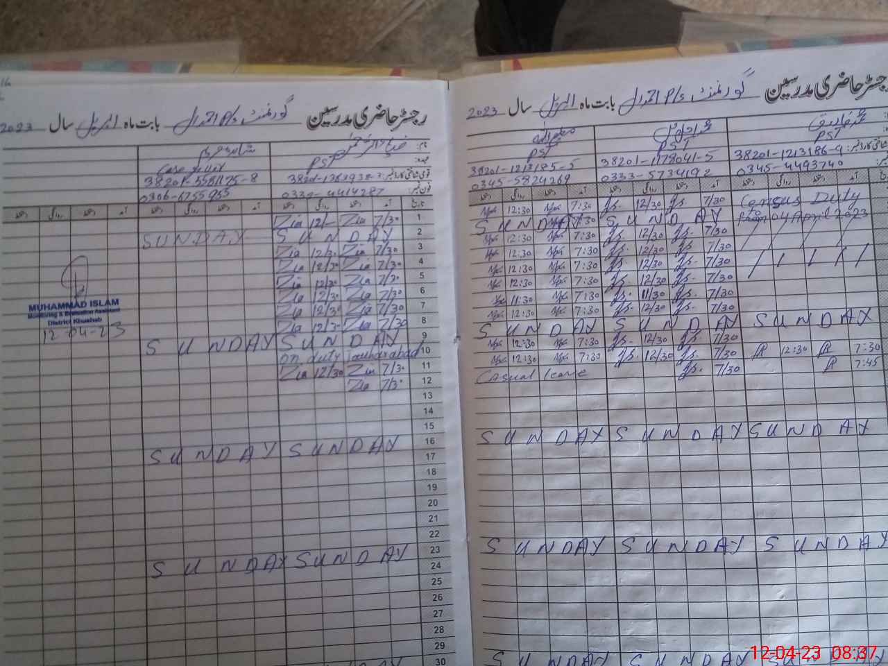 | 38**** | Mu**** Ul**** | PST | Regular | 0 | 0 | 0 | 0 | 0 | 0 | 0 | 0 | 0 | Casual |