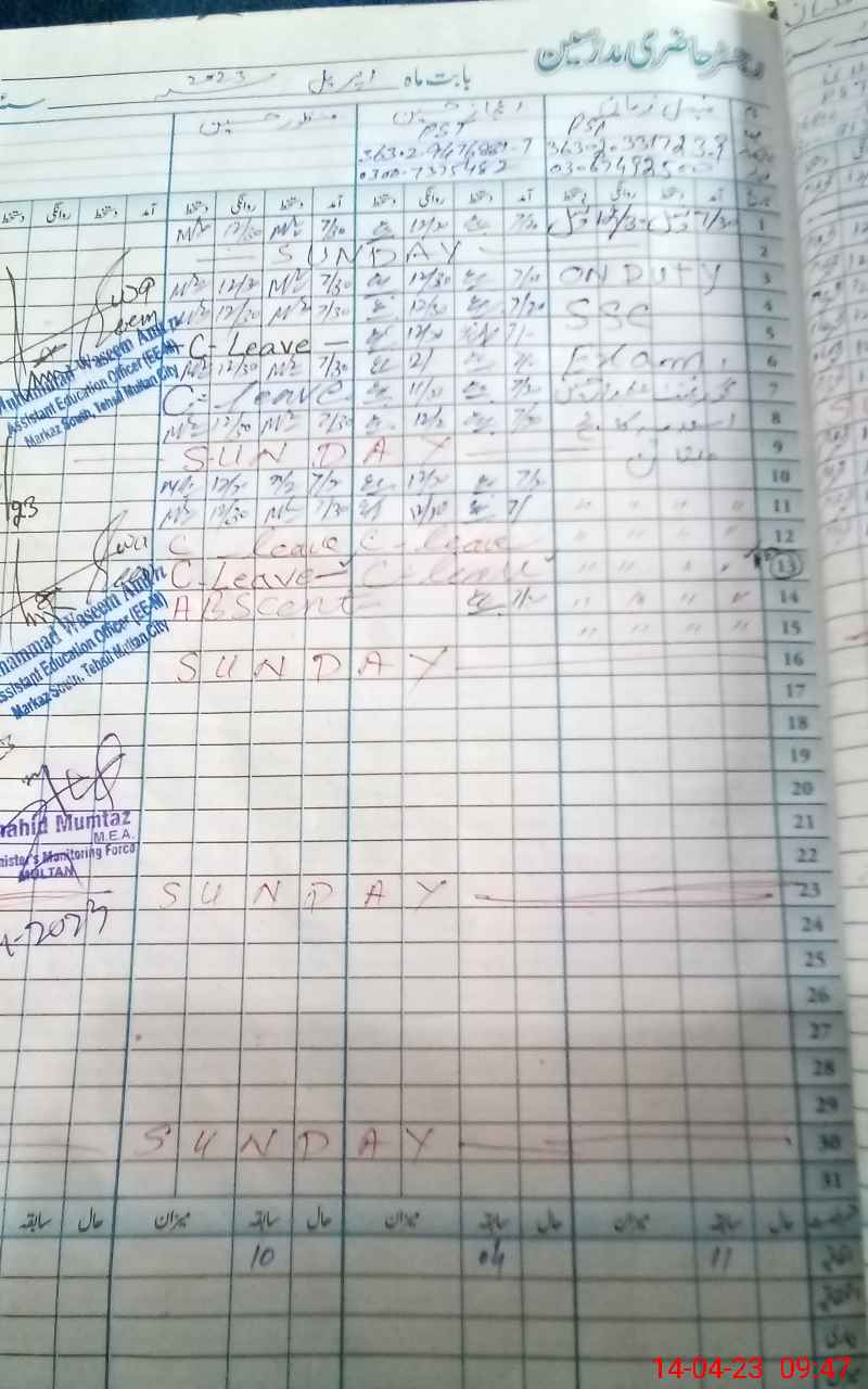 | 36**** | Fa**** Za**** | PST | Regular | 0 | 0 | 0 | 0 | 0 | 0 | 0 | 0 | 0 | Exam Duty |