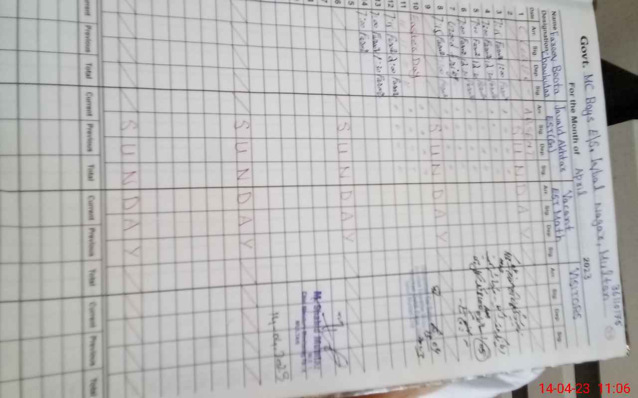 | Name: Gh**** Hu**** Designation: (School Headmaster's/Headmistress's) SST ARTS Phone/Cell Number: 03**** |