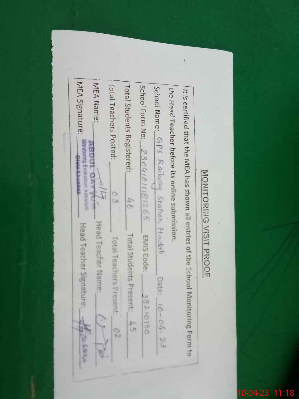 | EMIS Code: 38210130 | Name of School: GPS RAILWAY STATION HADALI | |||