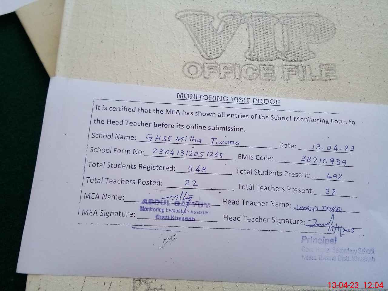 | EMIS Code: 38210939 | Name of School: GHSS MITHA TIWNA | |||