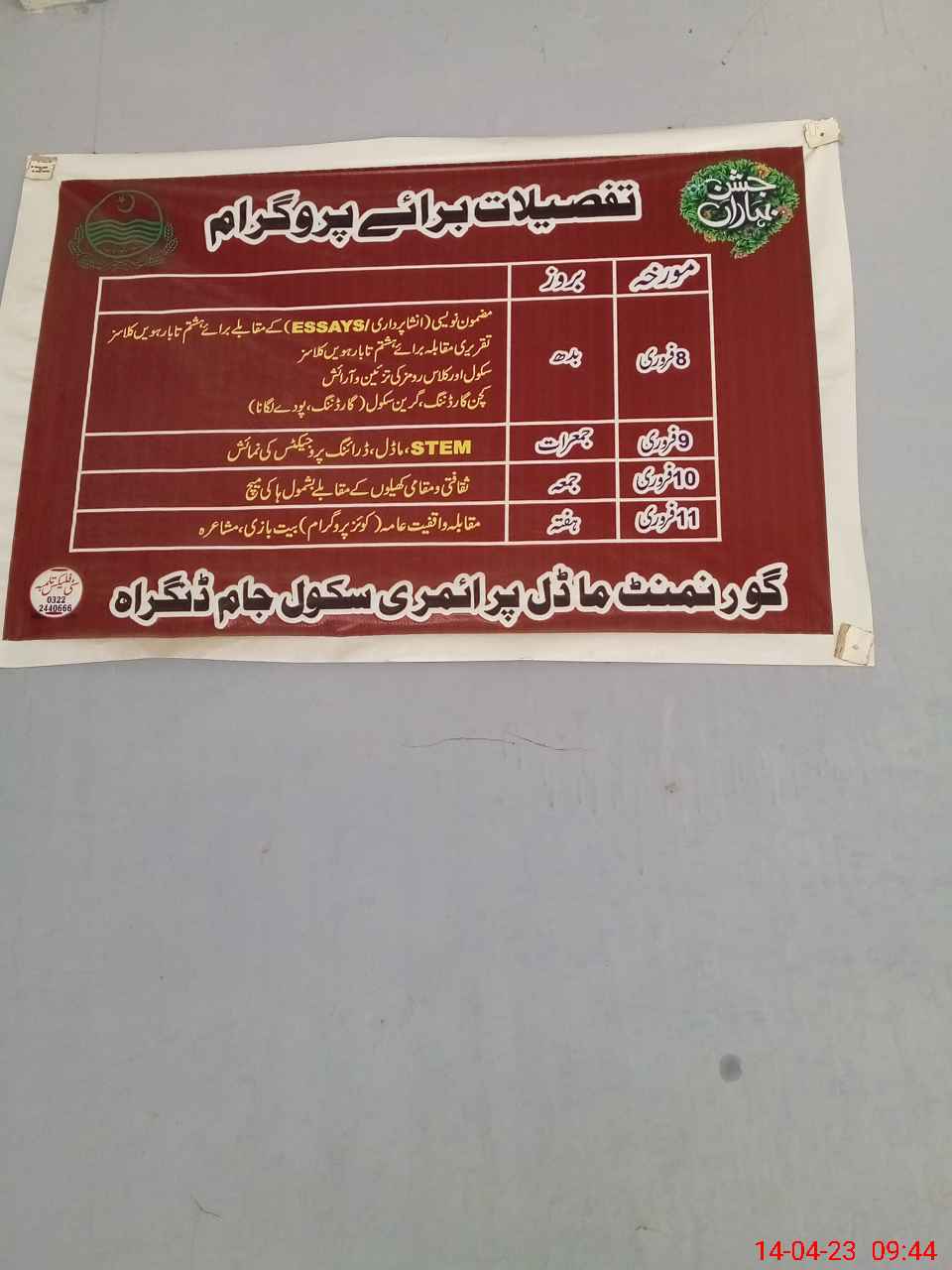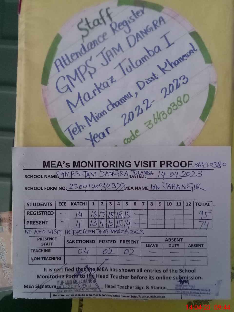 | EMIS Code: 36430380 | Name of School: GMPS JAM DANGRA, TULAMBA | |||