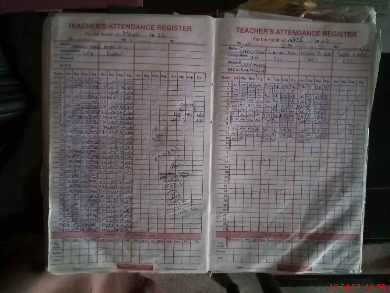 | CNIC | Full Name | Designation | R/C | Absence During Last Calender Month |
