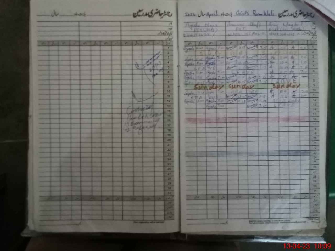 | CNIC | Full Name | Designation | R/C | Absence During Last Calender Month |