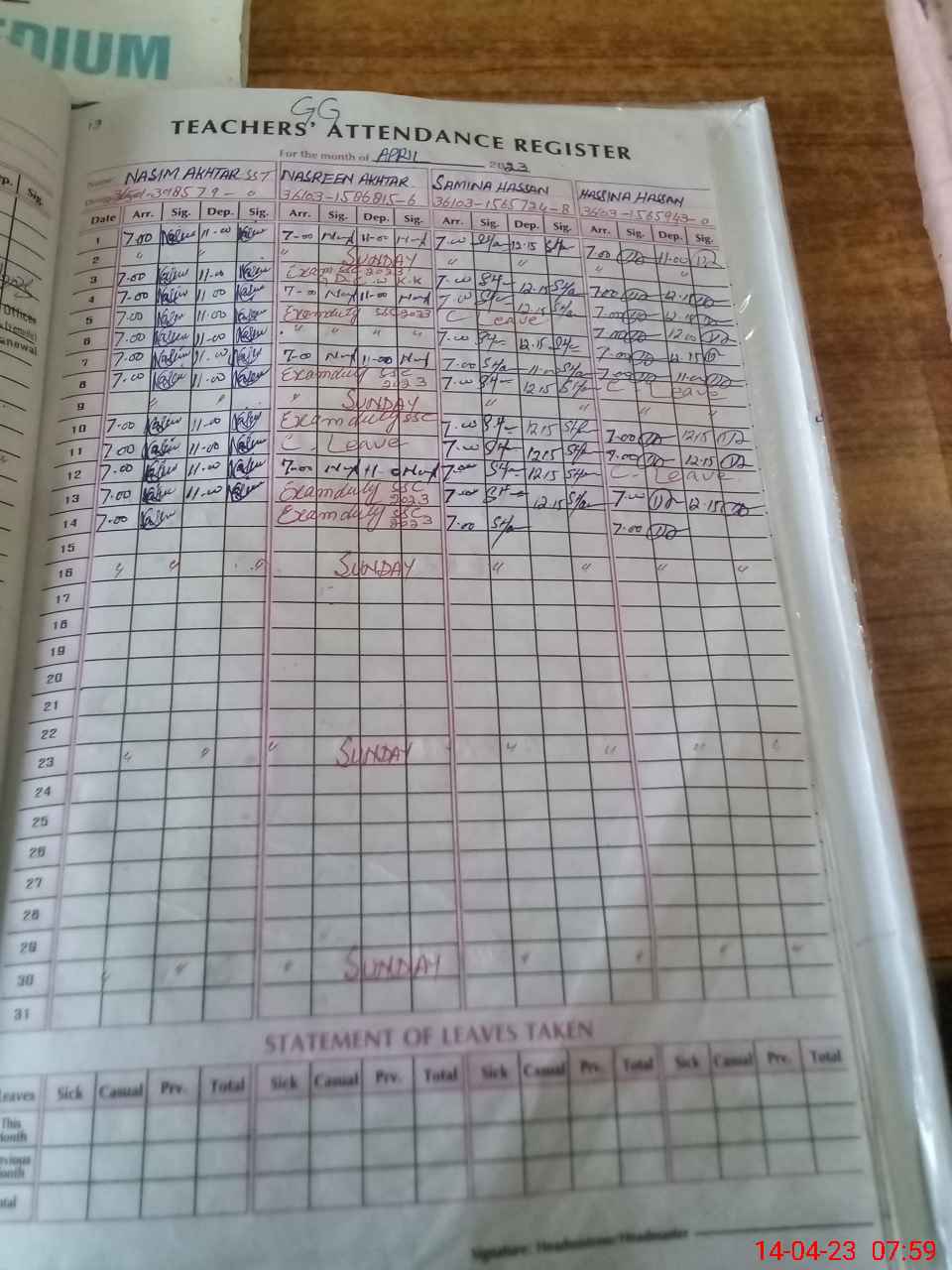 | 36**** | Na**** Ak**** | PST | Regular | 2 | 0 | 0 | 0 | 0 | 0 | 0 | 0 | 2 | Exam Duty |