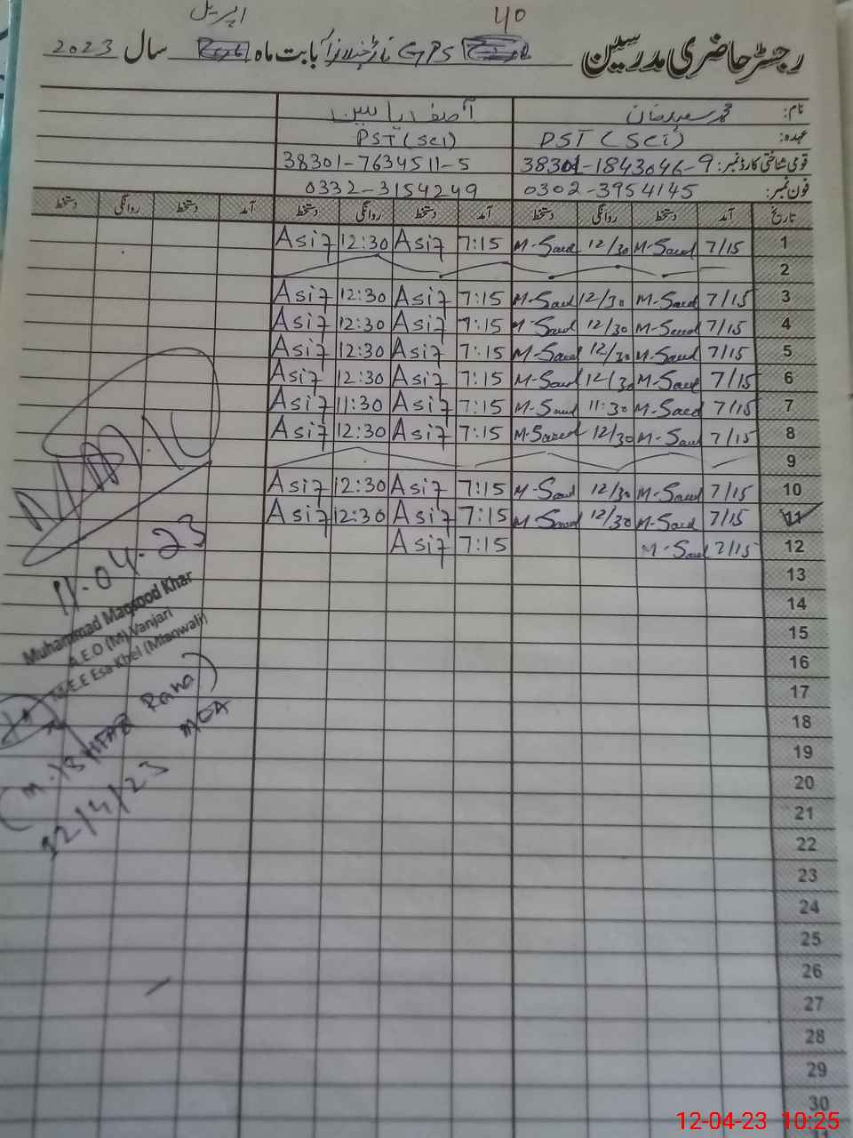 | Name: As**** Ya**** Designation: (School Headmaster's/Headmistress's) PST Phone/Cell Number: 03**** |