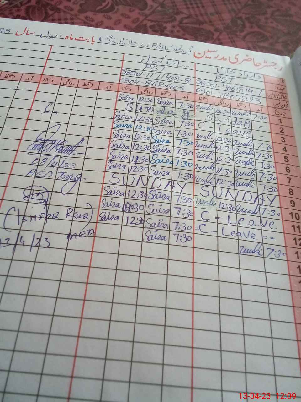 | 38**** | Ka**** Ah**** Kh**** | PST | Regular | 0 | 0 | 0 | 0 | 0 | 0 | 0 | 0 | 0 | Exam Duty |