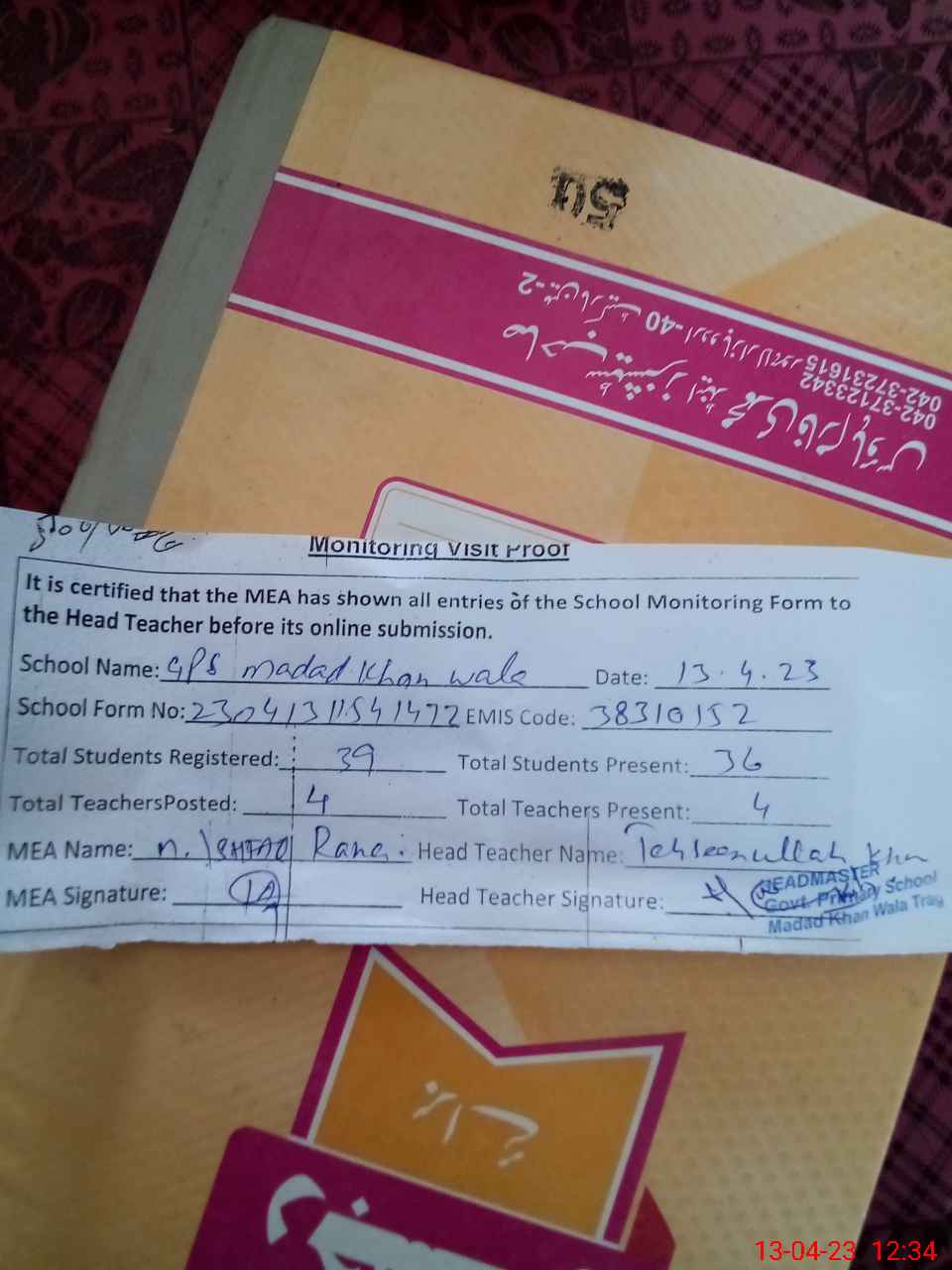 | EMIS Code: 38310152 | Name of School: GPS MADAD KHAN WALA PO TRAG ISA KHEL MIANWALI | |||
