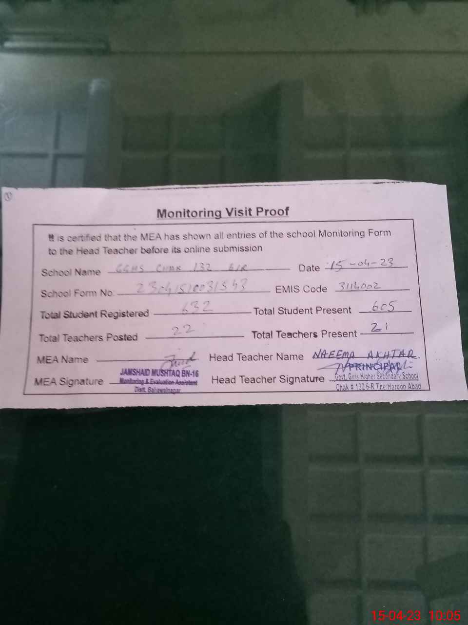 | EMIS Code: 31140002 | Name of School: GGHSS CHAK NO.132/6-R | |||