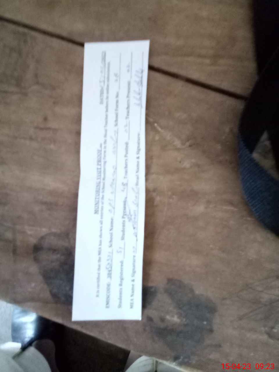 | Attendance Register | Head Teacher | MEA with School | Visit Proof |