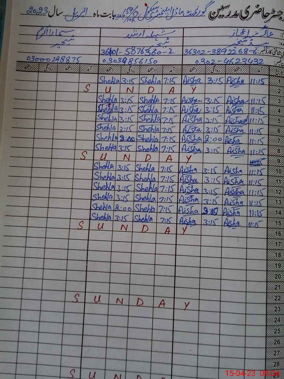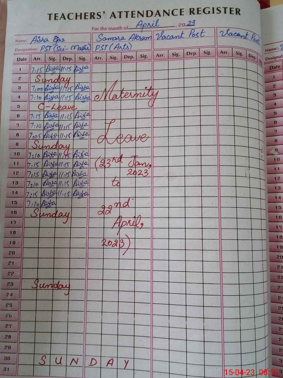 | 36**** | Sa**** Ak**** | PST | Regular | 0 | 0 | 0 | 0 | 0 | 0 | 0 | 0 | 0 | Maternity |