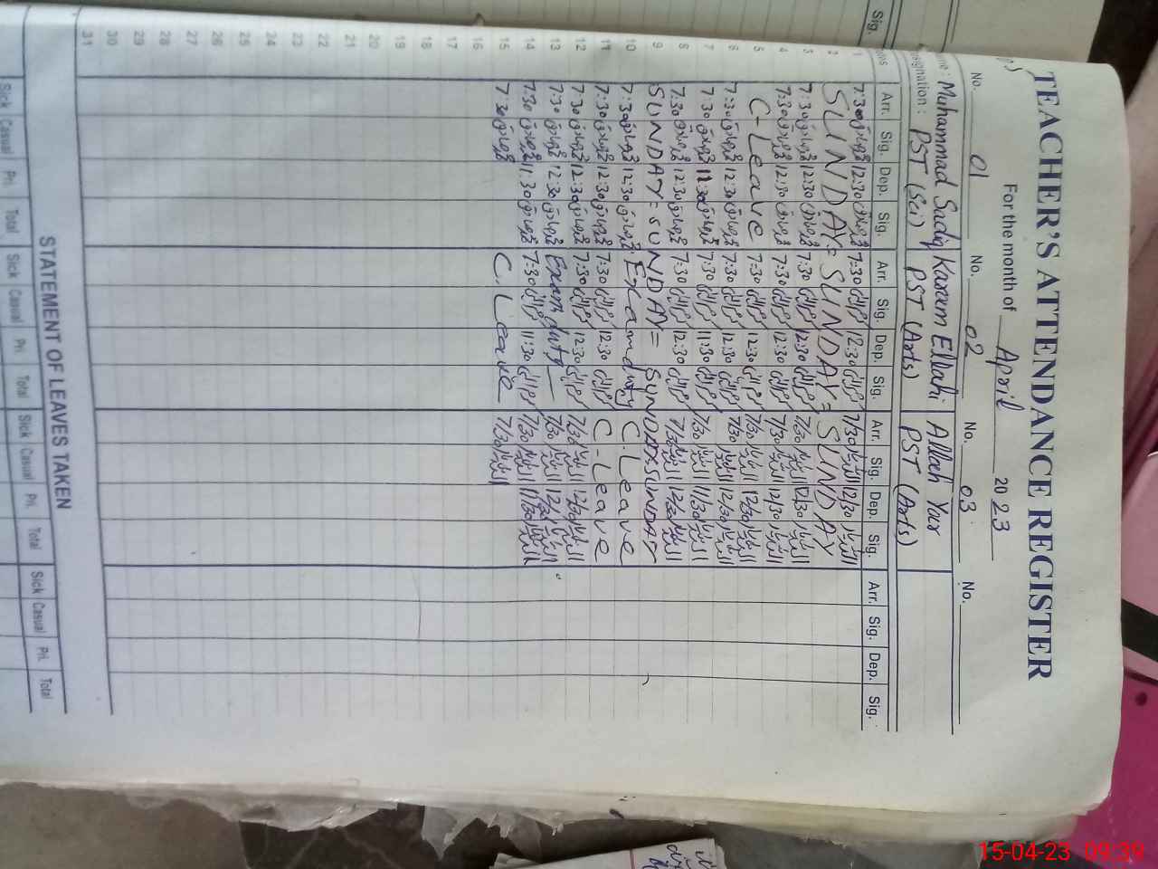 | 32**** | Ka**** El**** | PST | Regular | 0 | 5 | 0 | 0 | 0 | 0 | 0 | 0 | 0 | Casual |