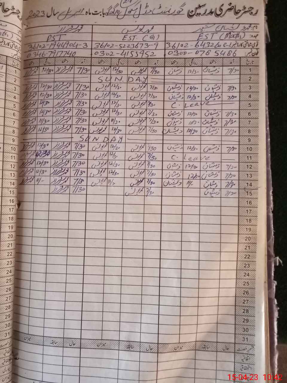 | 33**** | Ja**** Iq**** | EST | Regular | 0 | 0 | 0 | 0 | 0 | 0 | 0 | 0 | 0 | Exam Duty |