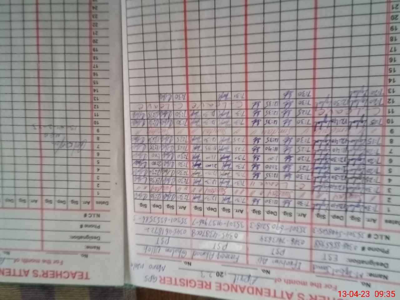 | Name: MU**** IQ**** JA**** Designation: (School Headmaster's/Headmistress's) EST V Phone/Cell Number: 03**** |