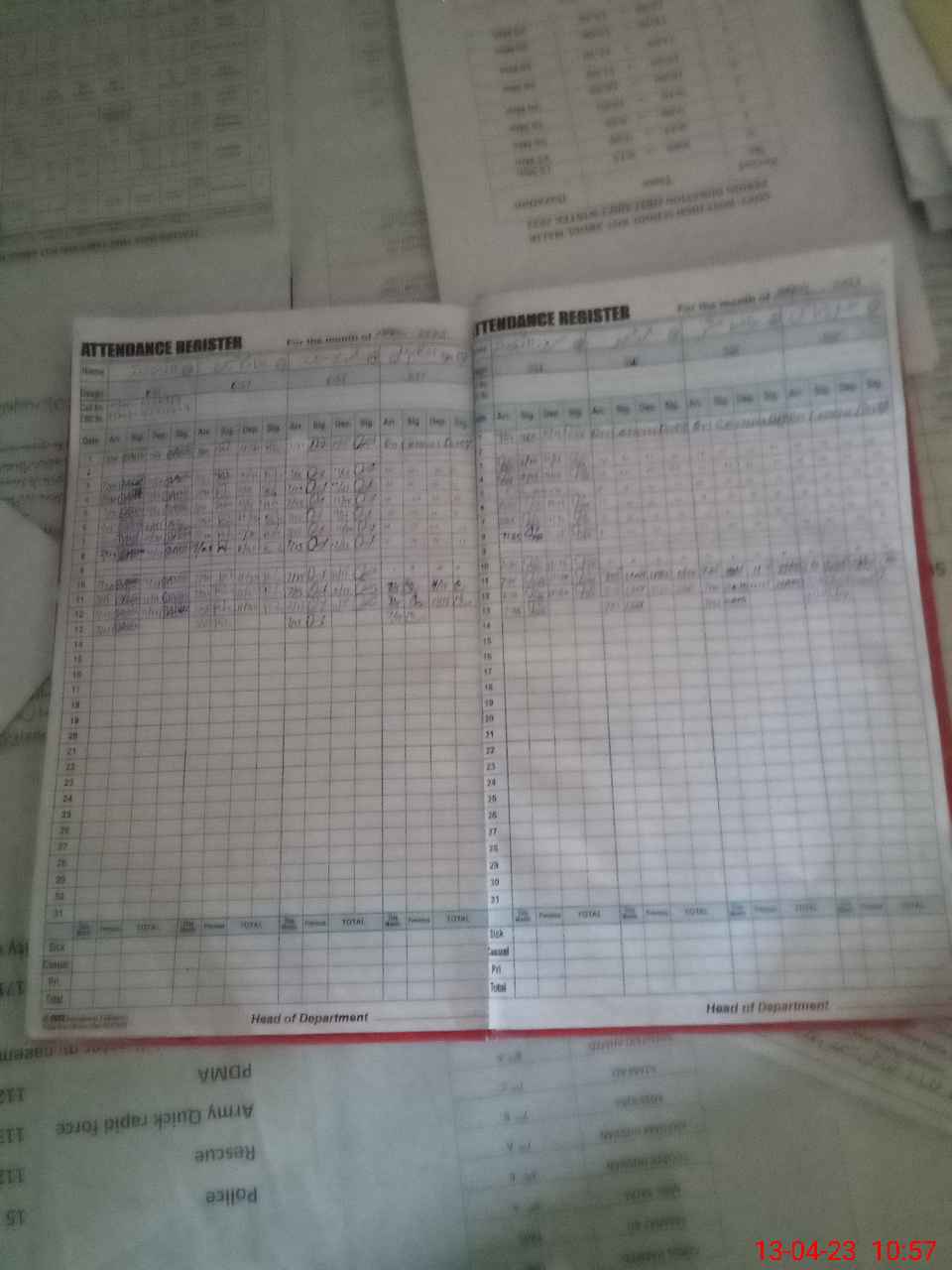 | CNIC | Full Name | Designation | R/C | Absence During Last Calender Month |