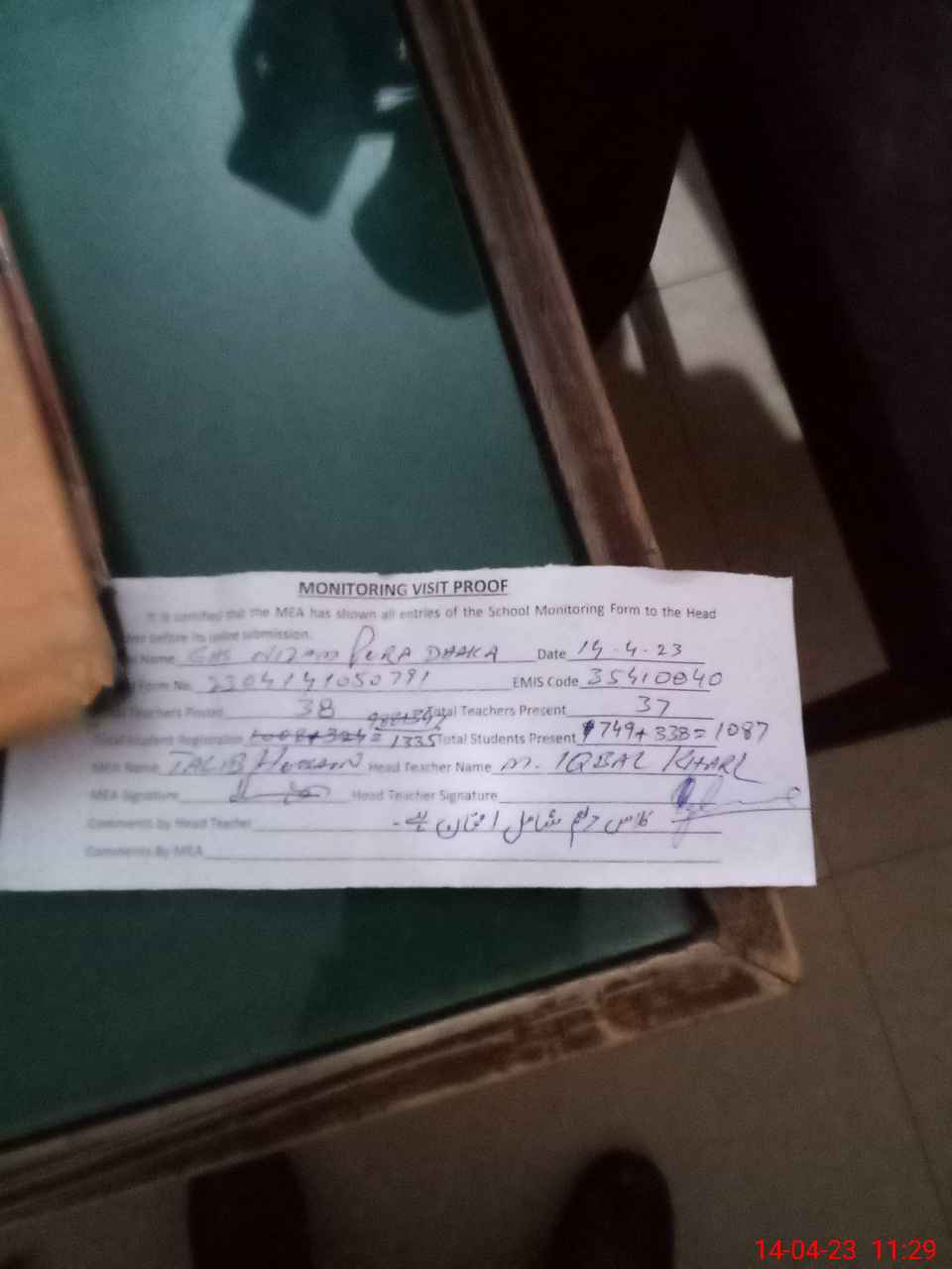 | EMIS Code: 35410040 | Name of School: GHS NIZAM PUR DHACCA VILLAGE | |||