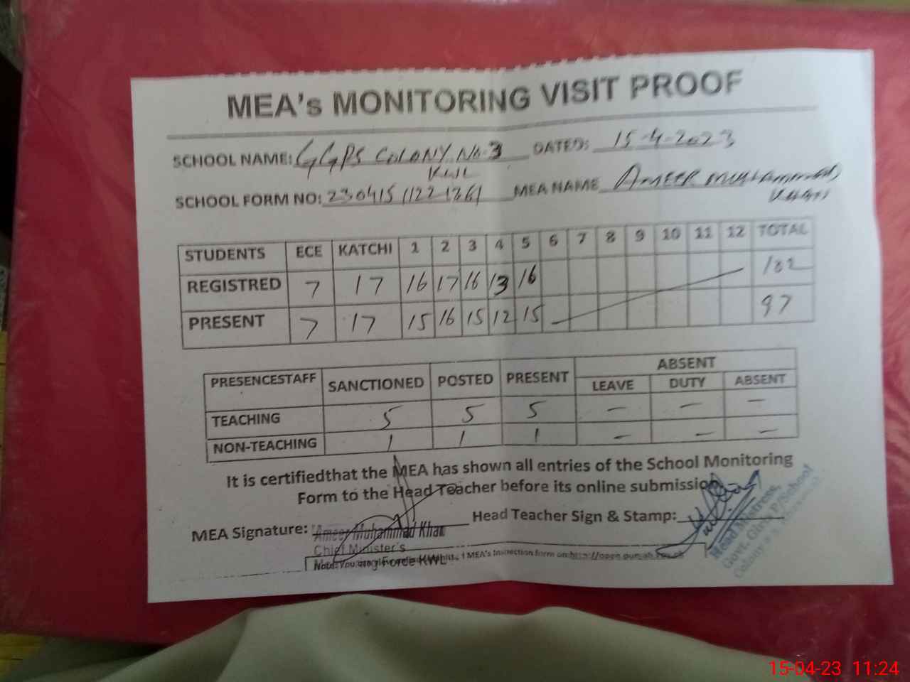 | EMIS Code: 36420358 | Name of School: GGPS COLONY NO.3 KHANEWAL | |||
