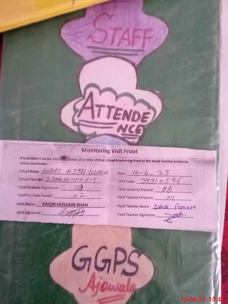 | EMIS Code: 39310596 | Name of School: GGPS AJJU WALA | |||