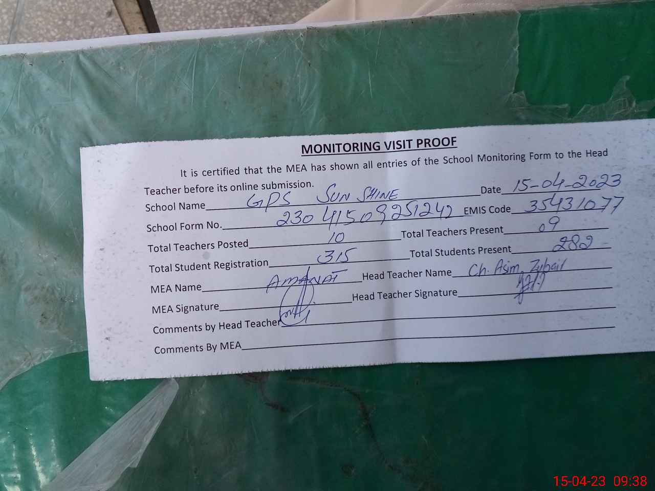 | EMIS Code: 35431077 | Name of School: GPS SUNSHINE | |||
