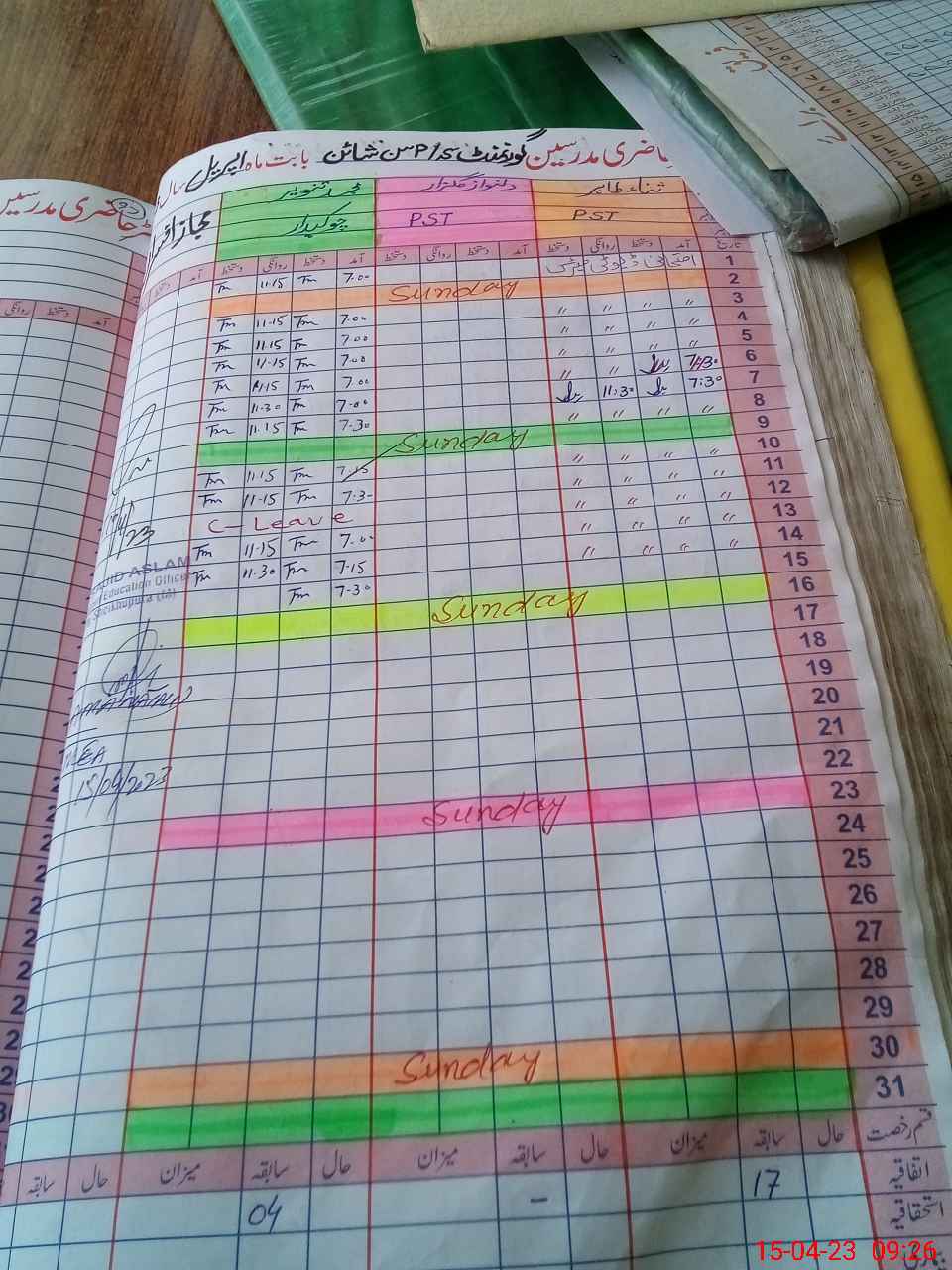 | Name: AS**** ZU**** Designation: (School Headmaster's/Headmistress's) PST Phone/Cell Number: 03**** |
