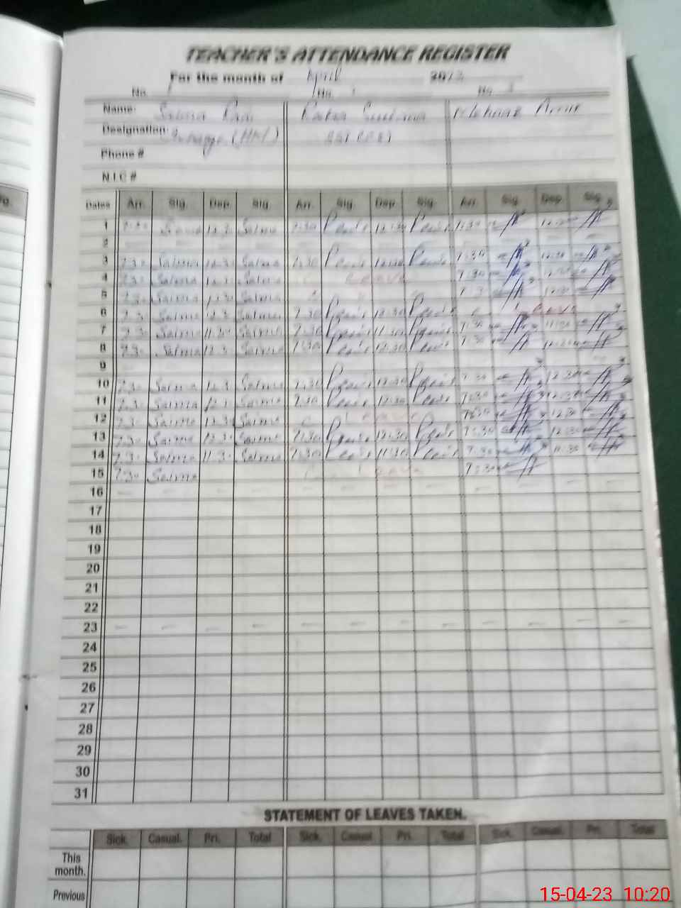 | 33**** | Sa**** Sh**** | PST | Regular | 0 | 0 | 0 | 0 | 0 | 0 | 0 | 0 | 0 | Casual |