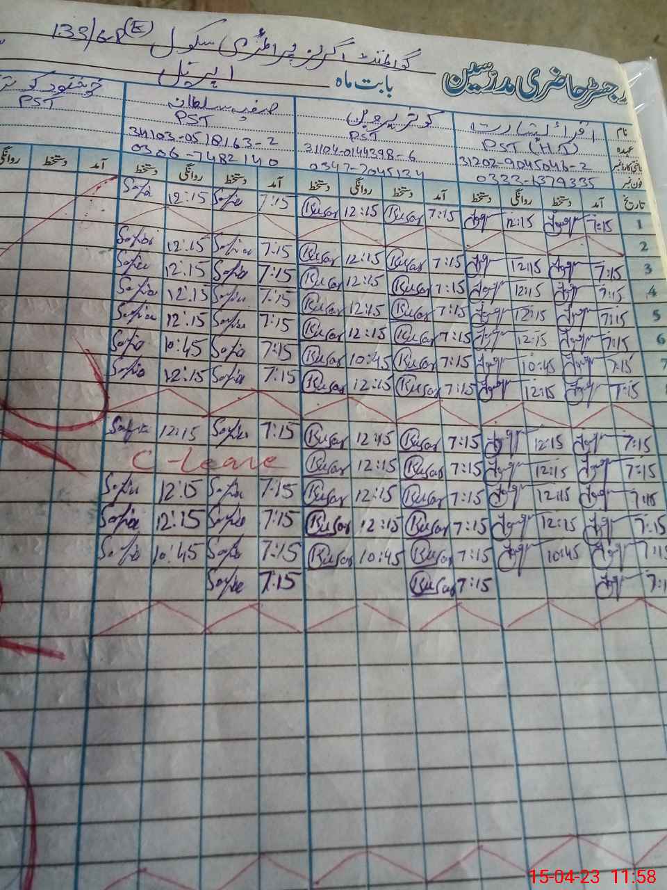 | Name: IQ**** BA**** Designation: (School Headmaster's/Headmistress's) ESE SCI MATH Phone/Cell Number: 03**** |