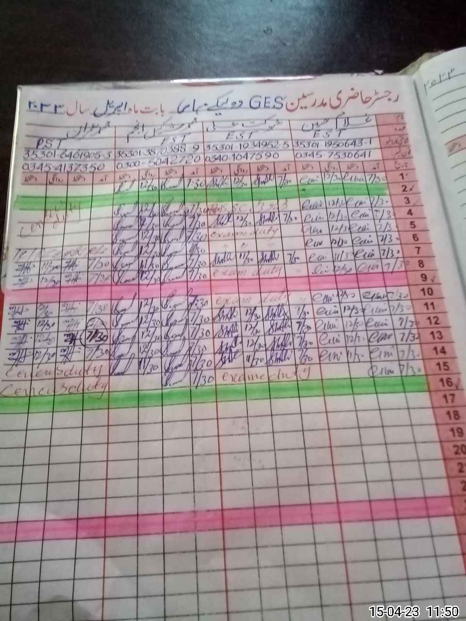 | Name: Sh**** Al**** Designation: (School Headmaster's/Headmistress's) EST Phone/Cell Number: 03**** |