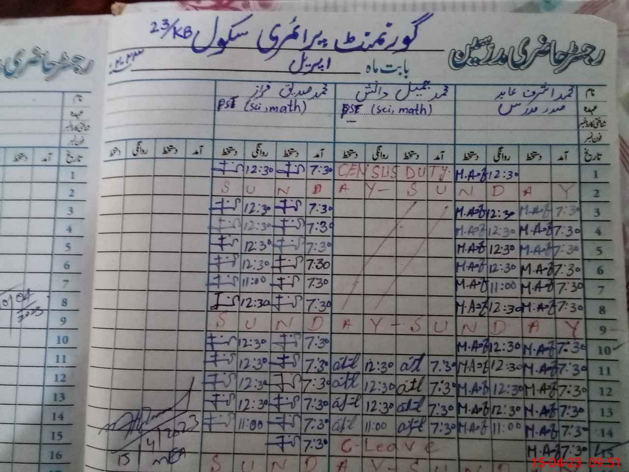 | CNIC | Full Name | Designation | R/C | Absence During Last Calender Month |