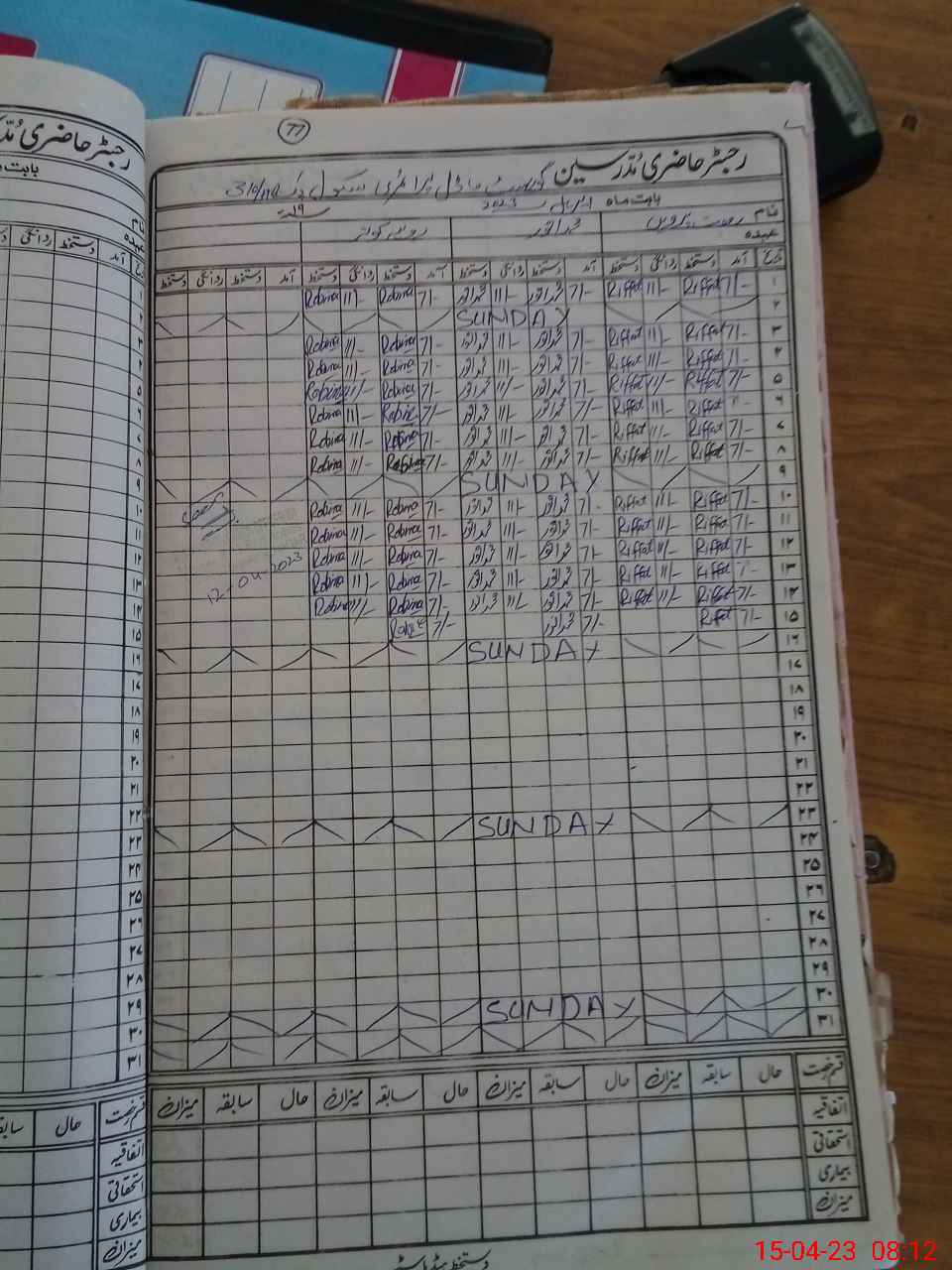 | CNIC | Full Name | Designation | R/C | Absence During Last Calender Month |