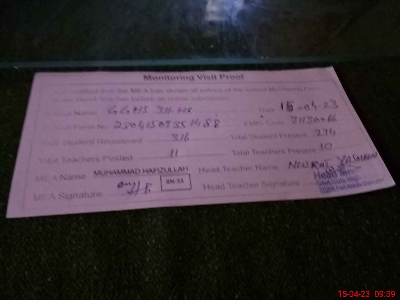 | EMIS Code: 31130066 | Name of School: GGHS CHAK NO. 311 HR | |||