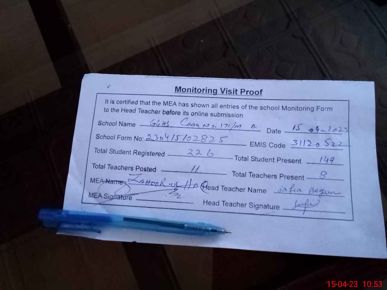 | EMIS Code: 31120522 | Name of School: GGHS CHAK NO. 171 MURAD (A) | |||