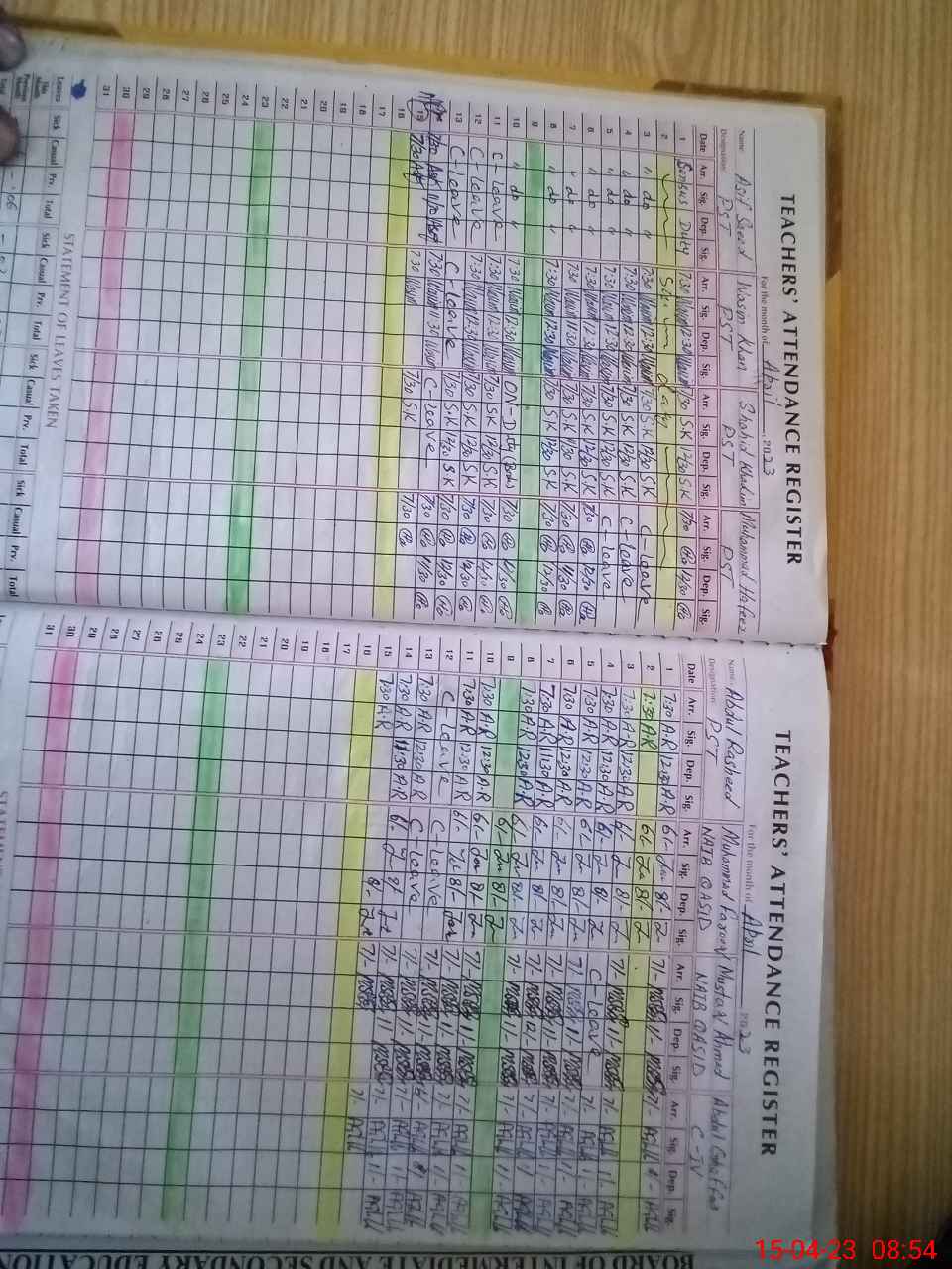| CNIC | Full Name | Designation | R/C | Absence During Last Calender Month |
