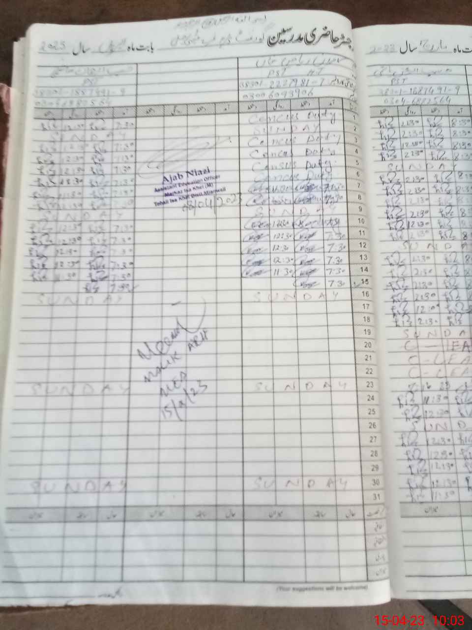 | CNIC | Full Name | Designation | R/C | Absence During Last Calender Month |