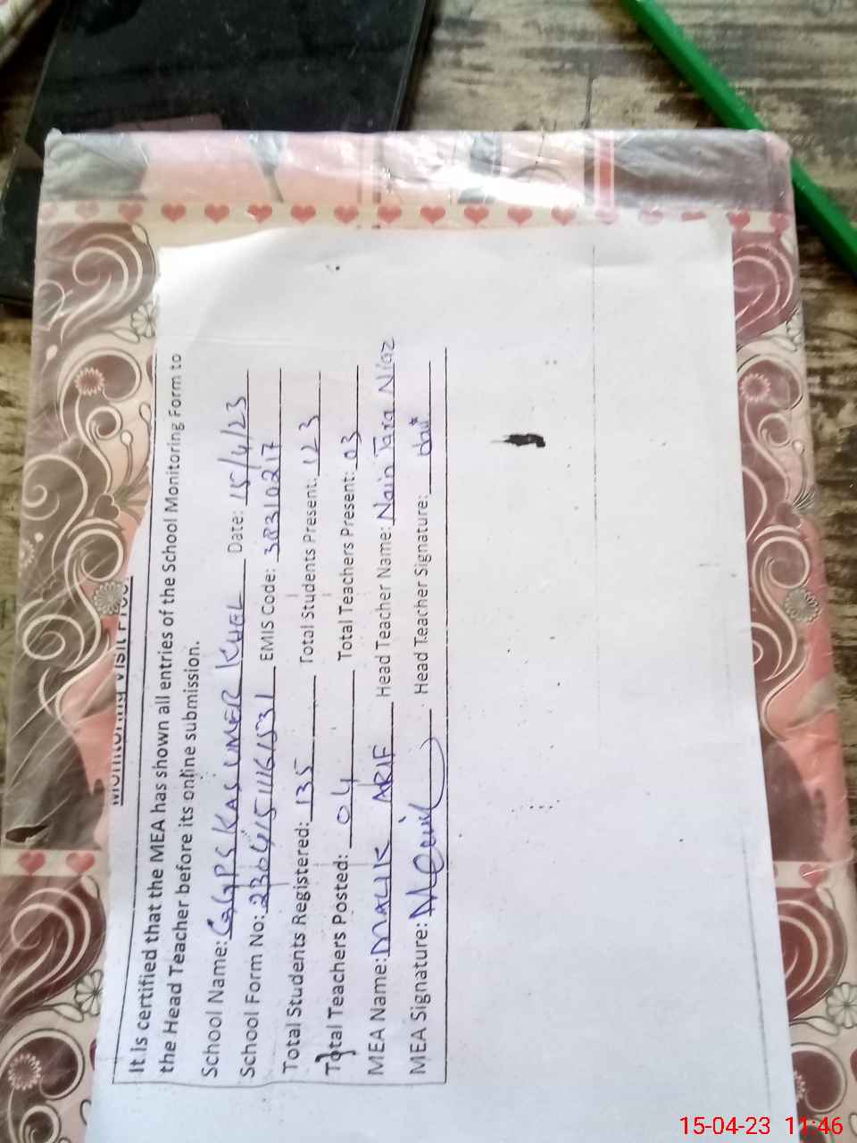 | EMIS Code: 38310217 | Name of School: GGPS KUS UMER KHEL | |||