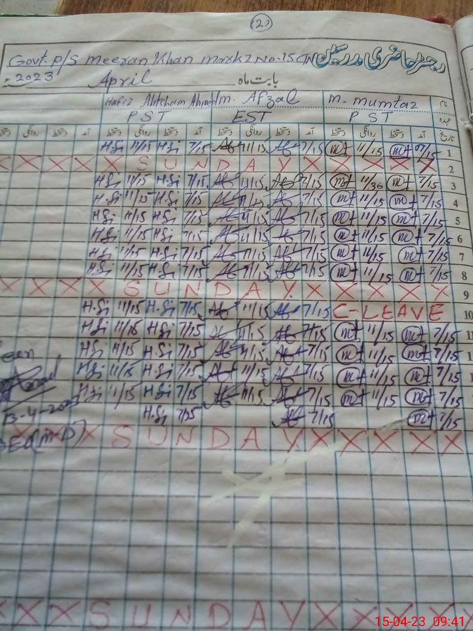 | CNIC | Full Name | Designation | R/C | Absence During Last Calender Month |