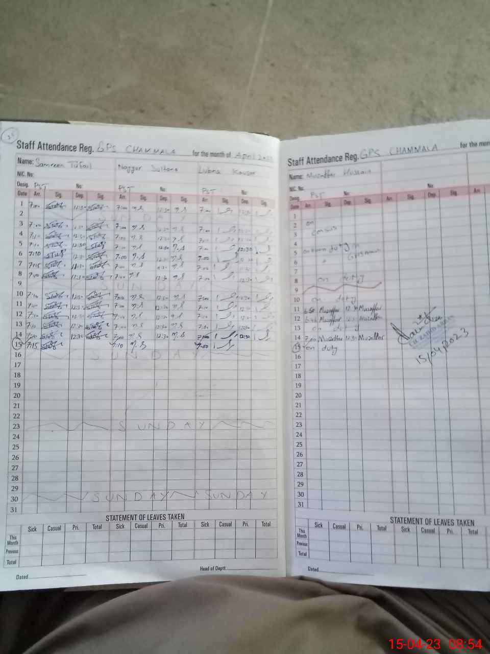| 37**** | Mu**** Hu**** | PST | Regular | 0 | 31 | 0 | 0 | 0 | 0 | 0 | 0 | 0 | Exam Duty |